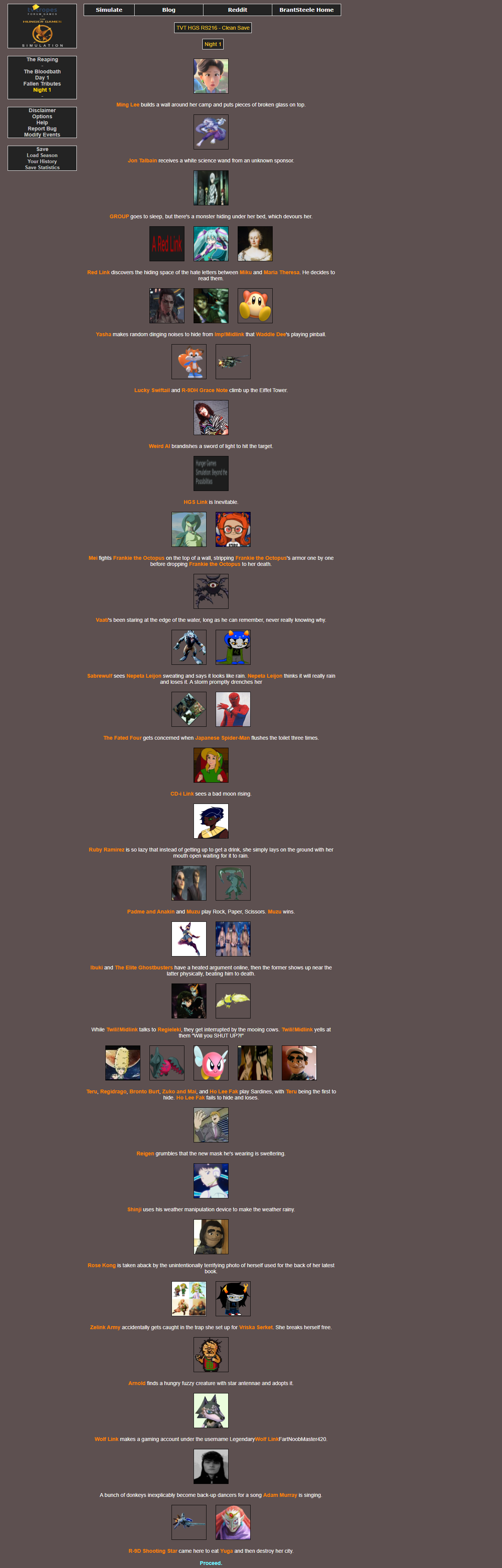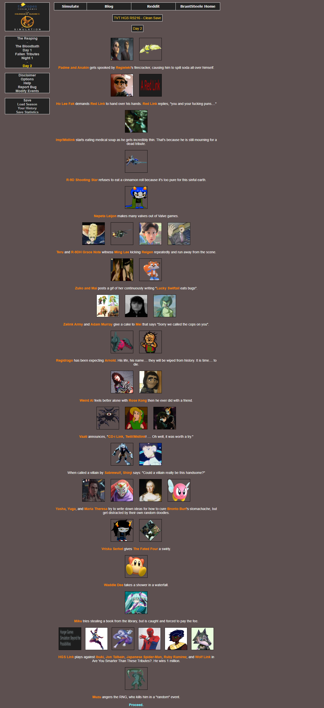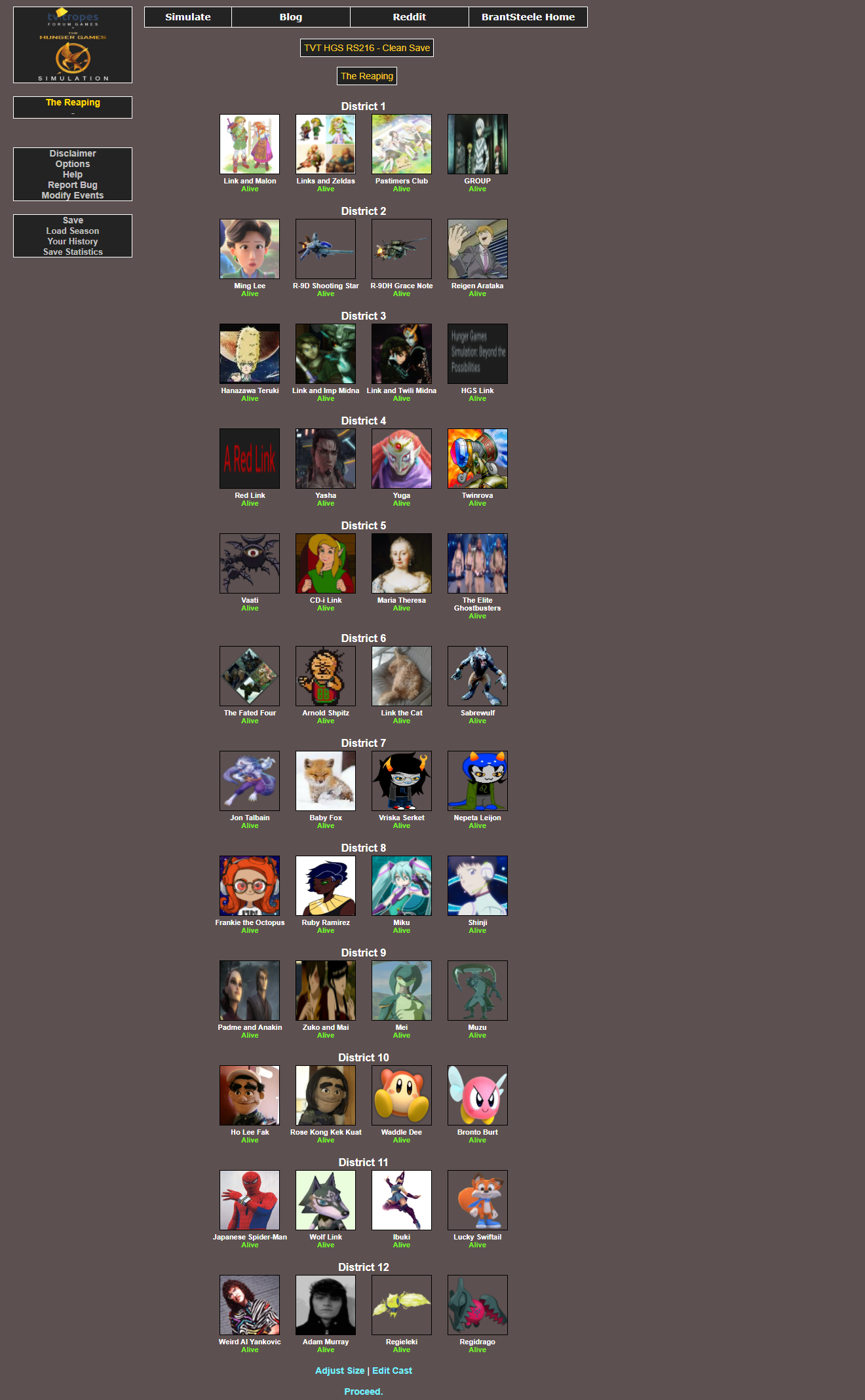 Welcome, everyone, to the 216th Season of the Hunger Games! We got something of a unique one for you tonight as we have a lot of Links here. As in Links from Zelda, Links related to the HGS itself and even a cat named Link. Yes, it will be a very Linky season. But we also have plenty of non-Link people here. So let's get down to it and meet our participants for this