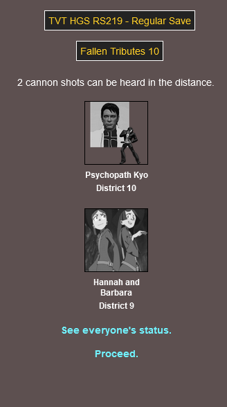 - Hannah and Barbara try their luck too much and are killed by the Peacekeepers.