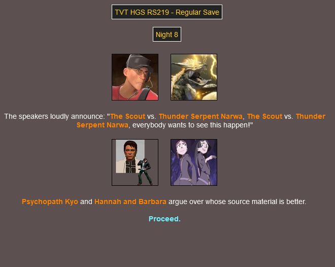 - "Yer gonna love dis one, Cursedmero Simpsonumias" said Kyo before piercing the abomination's skull with a dart.