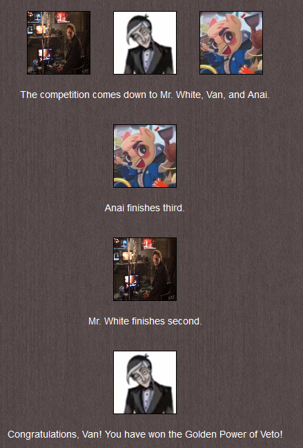 ◊ (but one thing I accidentally didn't screen and forgot about until now is Power and Van's alliance actually ended last week. Sorry about that!)