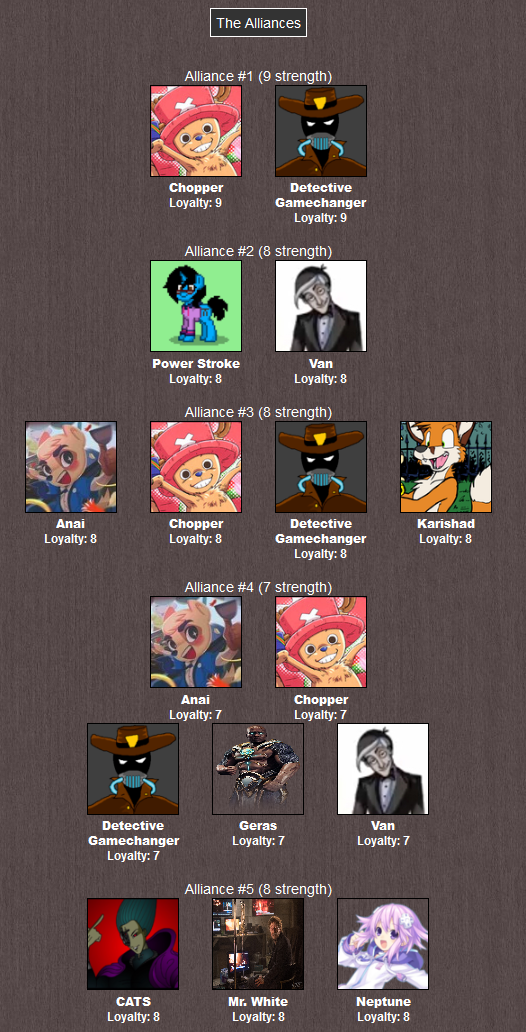- Det. GC also isn't feeling too well and is starting to feel stressed out from the game, and also starting to suspect his extra alliance might be found out, deciding to retreat for now.