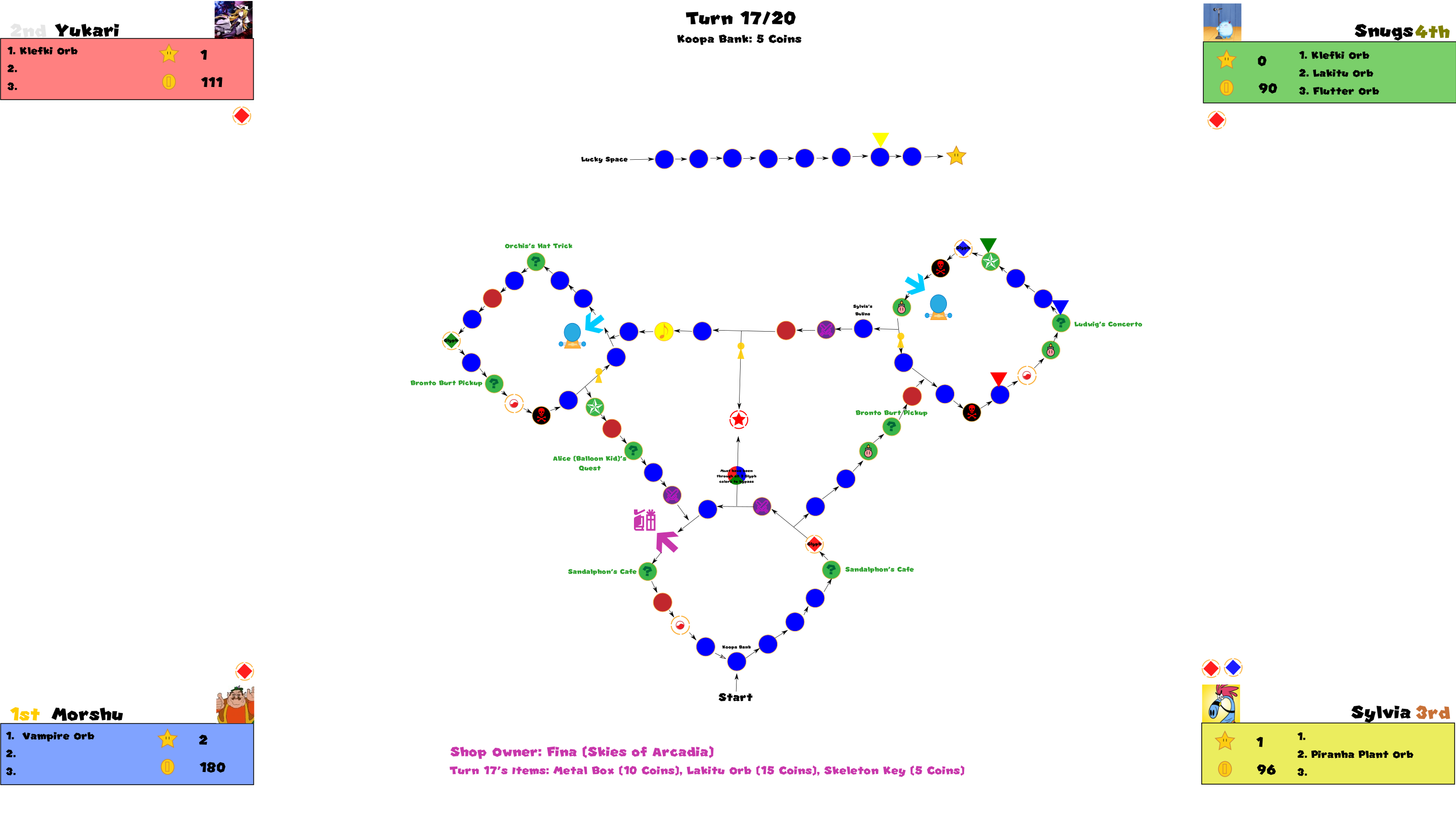 - Orb Space - Can’t be landed on like the Star Space but will give a random orb to a player who passes it, which is revealed when they pass it.