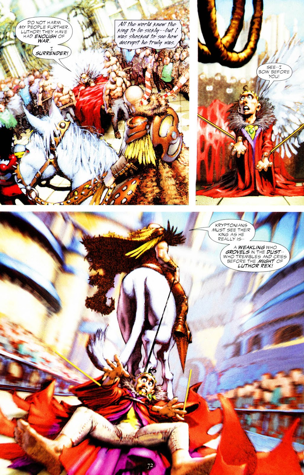 a complete surrender of his own forces, to stop Luthor from killing them. Luthor decided to show kryptonians how weak their ruler is and tied Kal'El to his horse and dragged him across the streets.