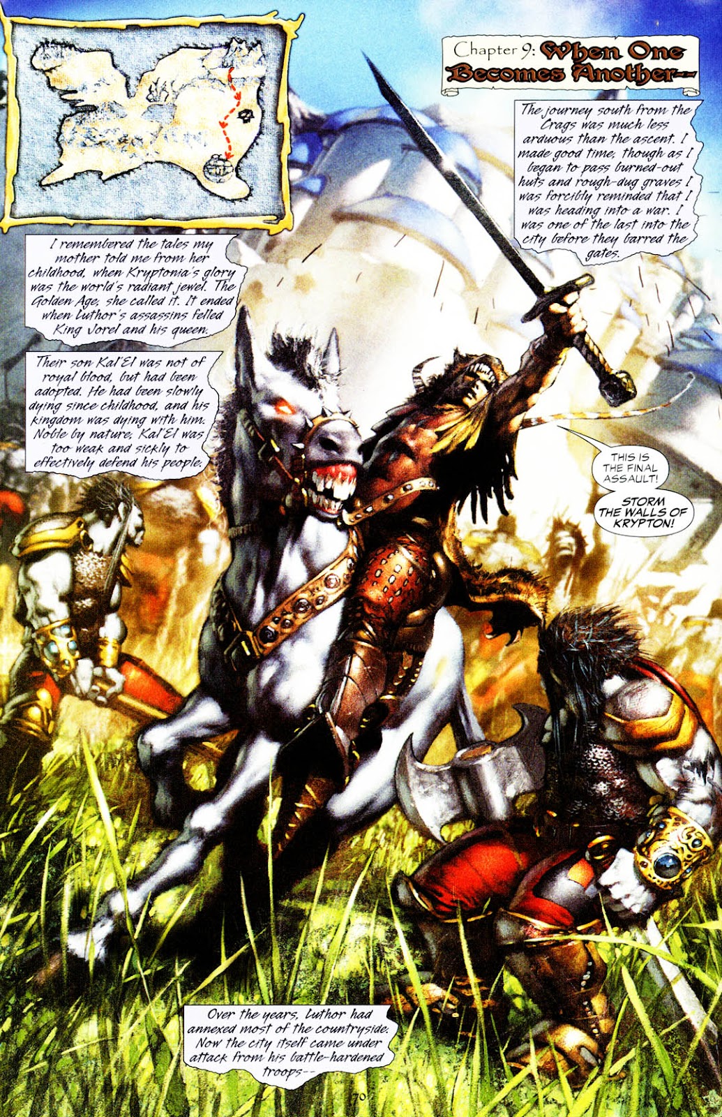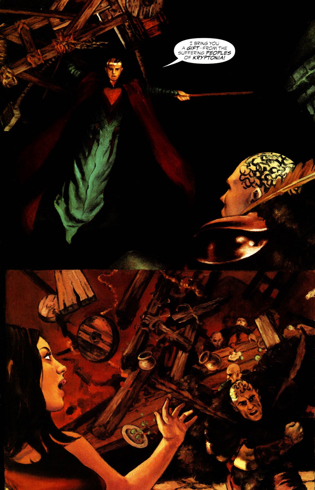 off his kryptonite necklace, which "cured" Kal'El and allowed him to easily overpower the guards. As Luthor plans to massacre a thousand kryptonians