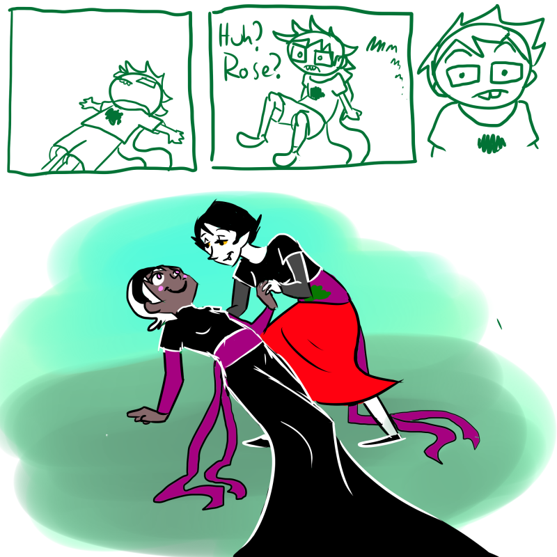 "And as long as a sack of shit is not a good thing to be, chivalry will never die."NO NO NO NO NO NONONONONONO GOD DAMMIT NOT HER TOO my heart is ACHING Hussie, please just either stop killing people or start bringing them back to life. I think I might really cry at Vriska's death. I didn't for Tavros, John, or Karkat or any of the others, but Vriska... She's not even my patron. That's Terezi. Maybe it's because I've drawn her a few hundred times in that damn flash I never finished, but I need her to be alive. And god fucking dammit the last header is hilarious. Why do you make me laugh on the same page that my newly-realized favorite character is about to die?