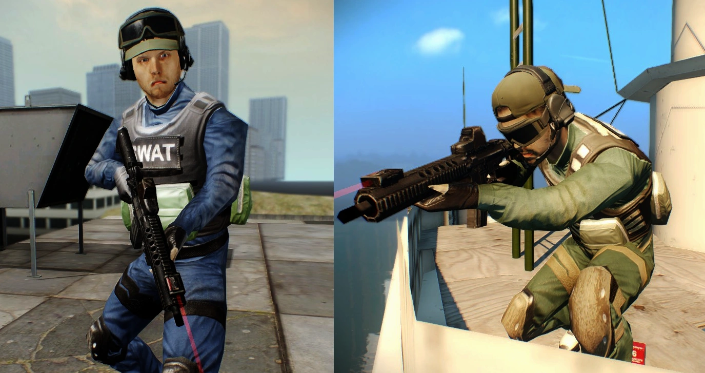 ◊ using short assault rifles instead of actual sniper rifles due to a lack of such weapons in the base game. Prop Recycling Recycled Animation Limited Animation.