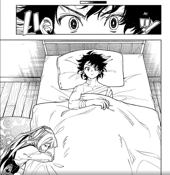 A character who’s been gravely injured or out for days wakes up in a bed… and finds someone asleep on their sheets, showing that person has been watching over them for an unreasonably long time.
